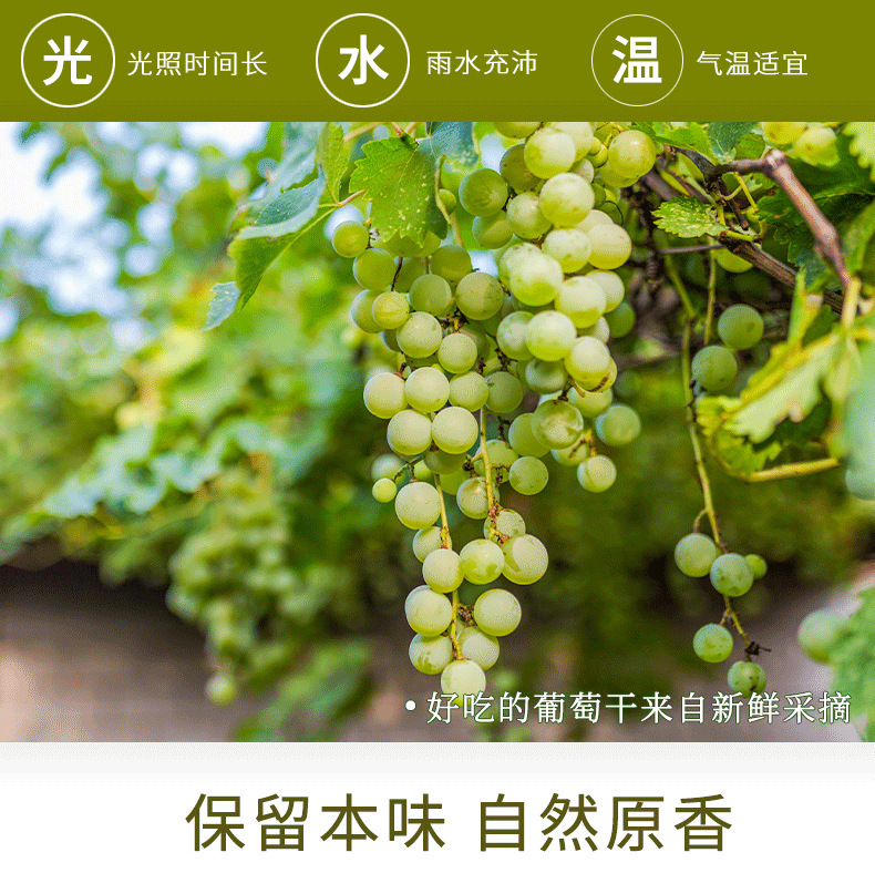 - Packaging specifications: green-colored raisins 250g