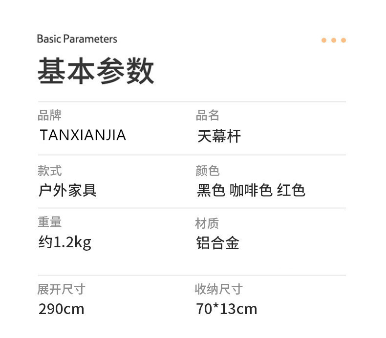 - Applicable number of people: 5-section canopy pole