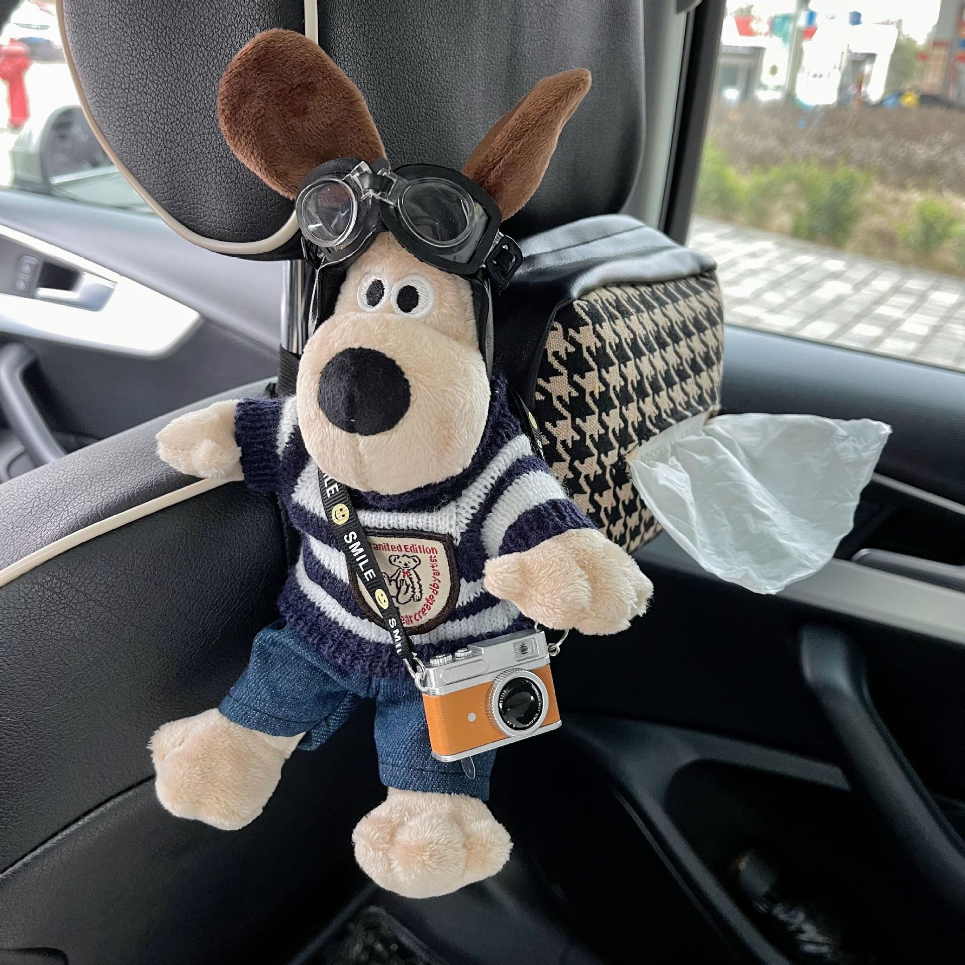 - Model: Green and black striped dog + camera + black tissue box (no shoes)