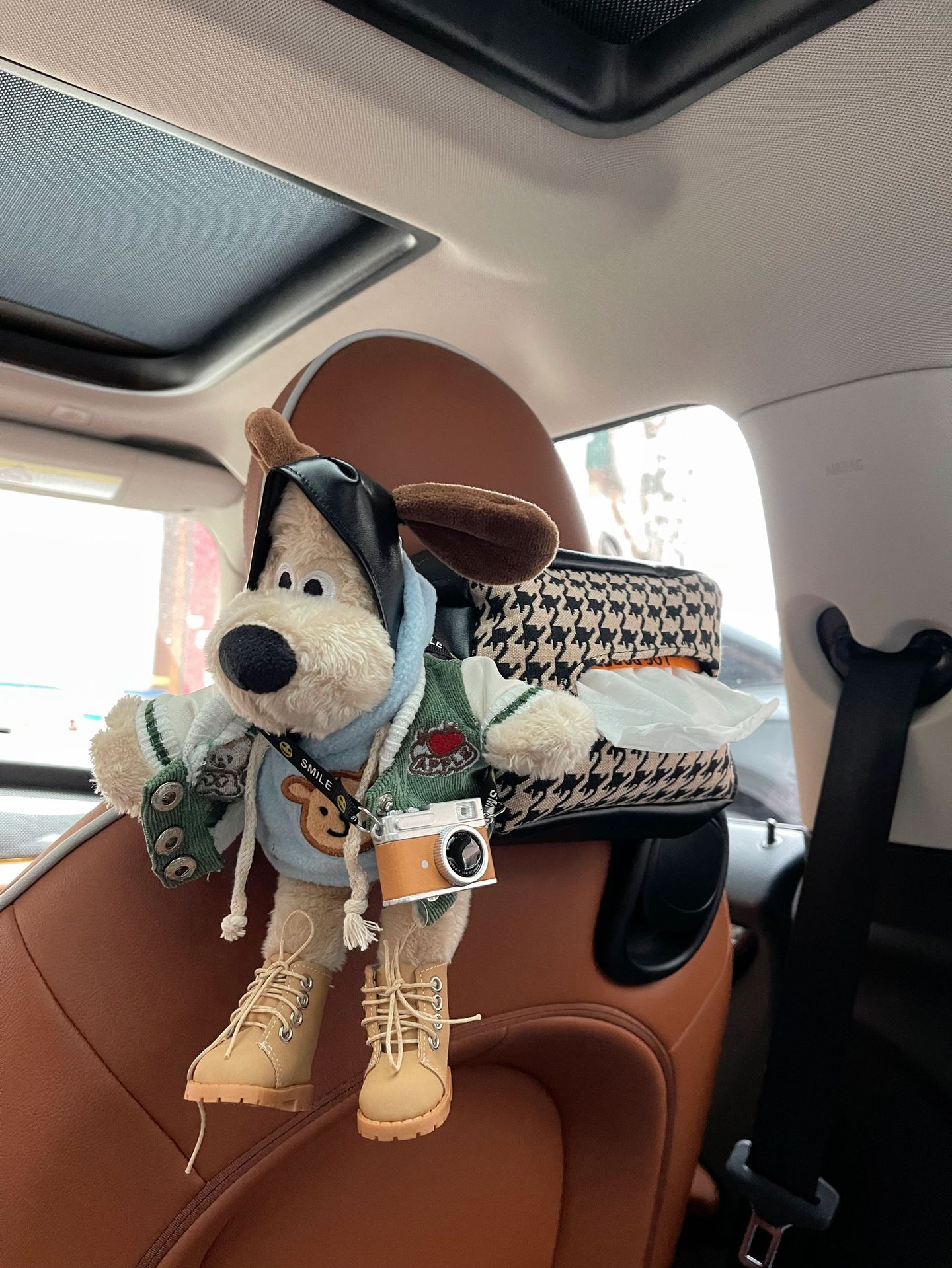 - Model: Leopard print sweater + camera brown tissue box (with shoes)