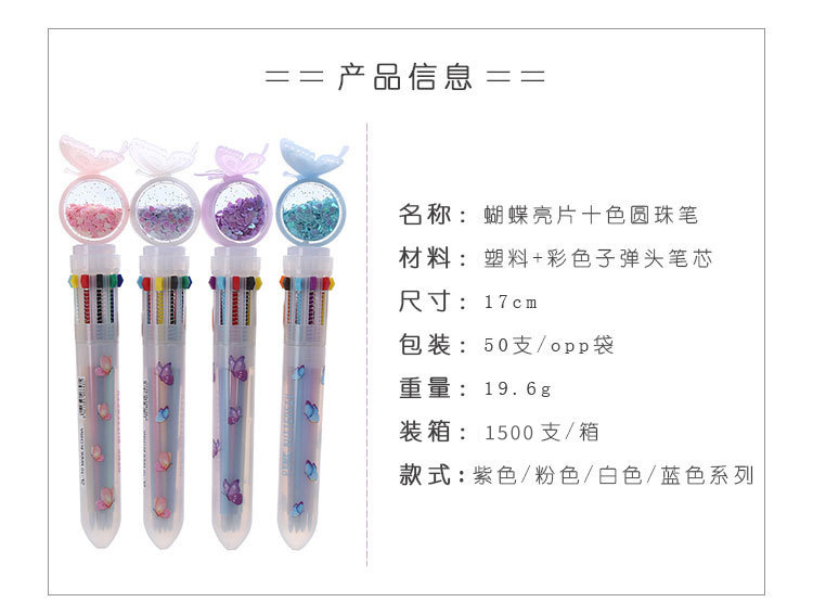 - 型號:蝴蝶亮片十色圓珠筆