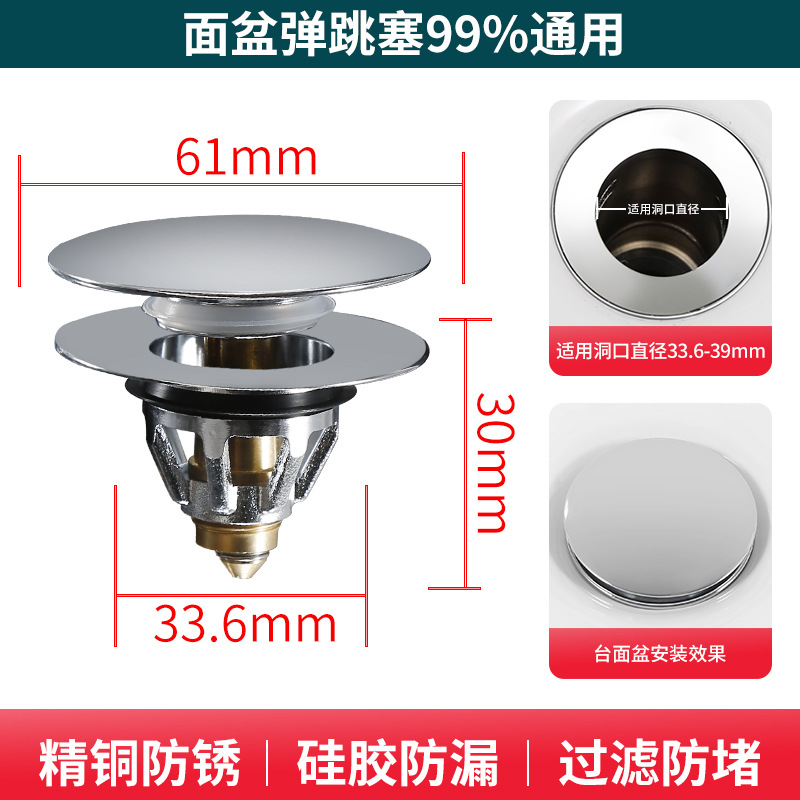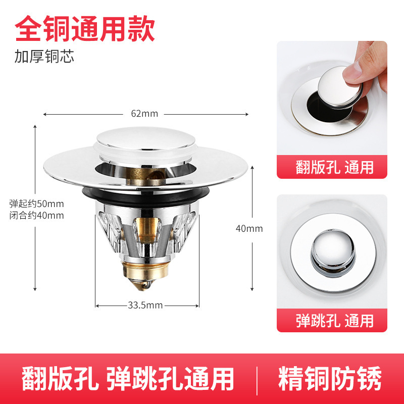 - 規格:【全銅銀色】大蓋通用彈跳芯(適用孔徑34-39cm)