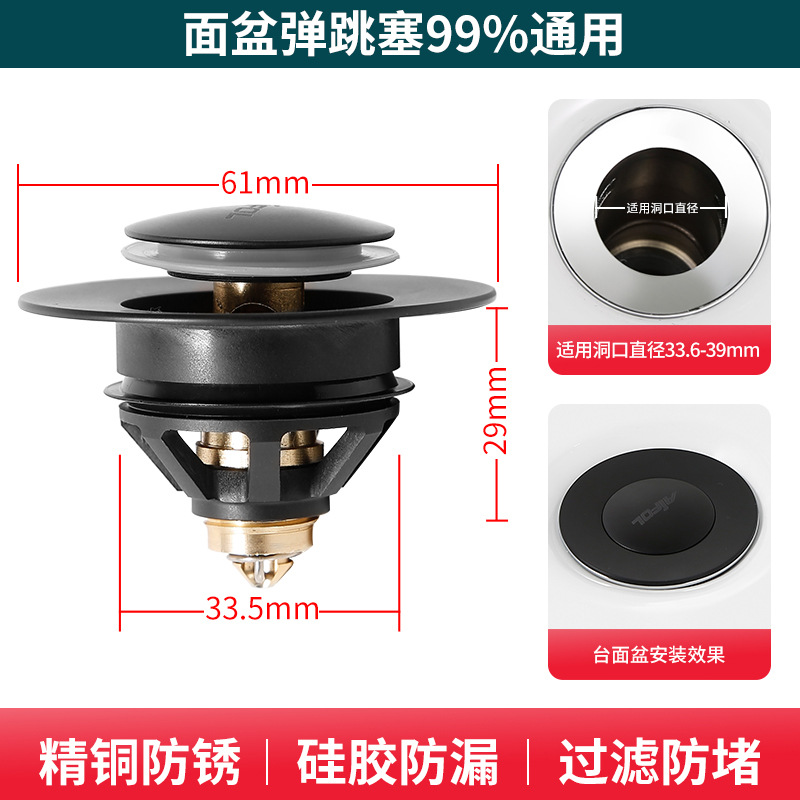 - 規格:【全銅黑色】通用彈跳芯(適用孔徑34-39cm)