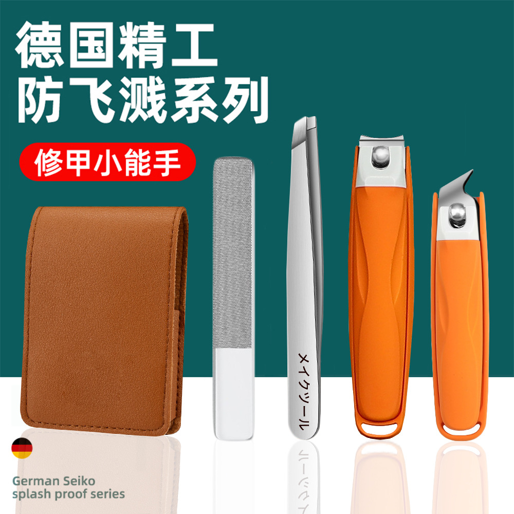 - Specifications: Orange plastic nail clipper set of four, brown leather case
