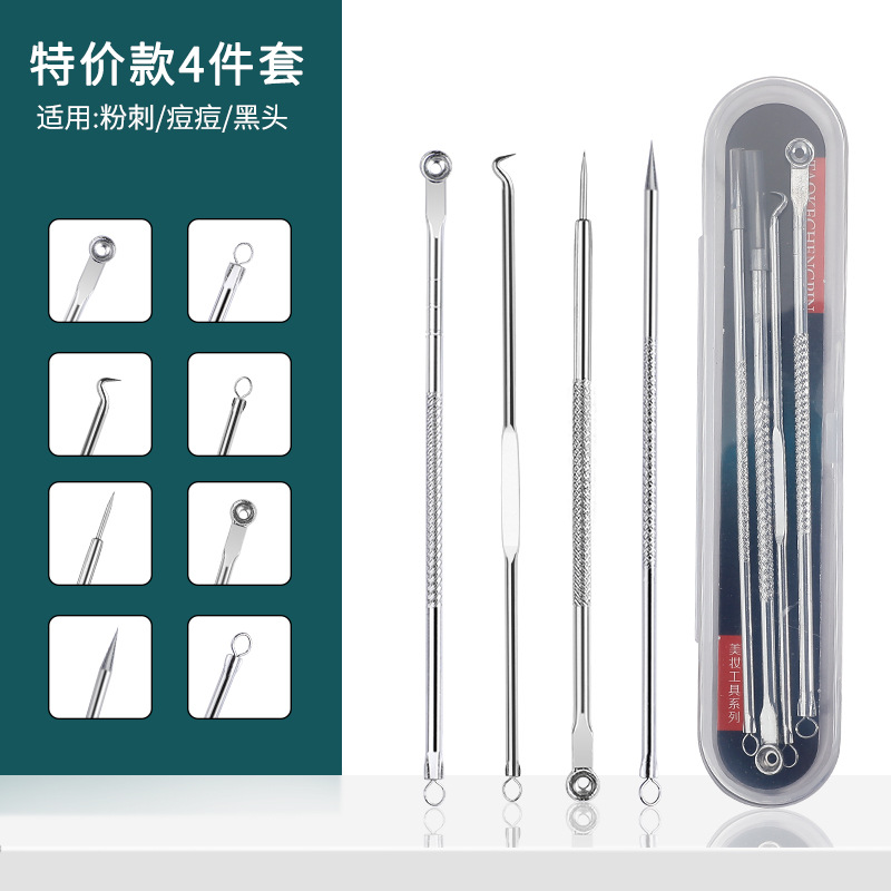 - Specifications: 4-piece set of acne needles [10x magnifying glass + alcohol cotton pads included]