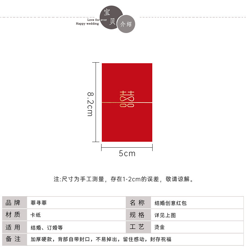 - Specifications: mini red envelope