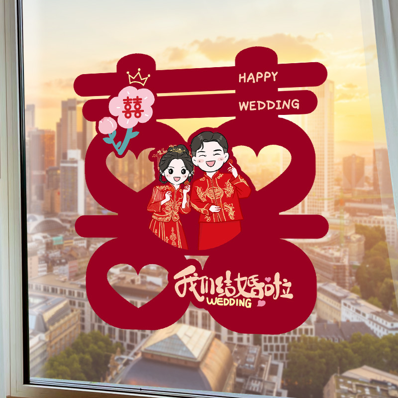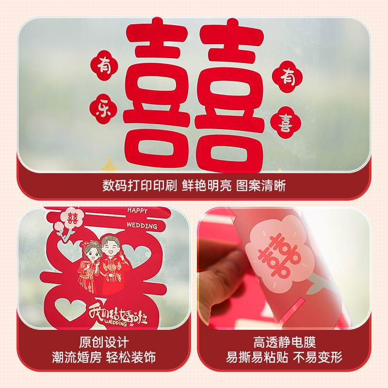- Specification: Colorful Double Happiness Mixed Set Static Stick-on/10 Piece
