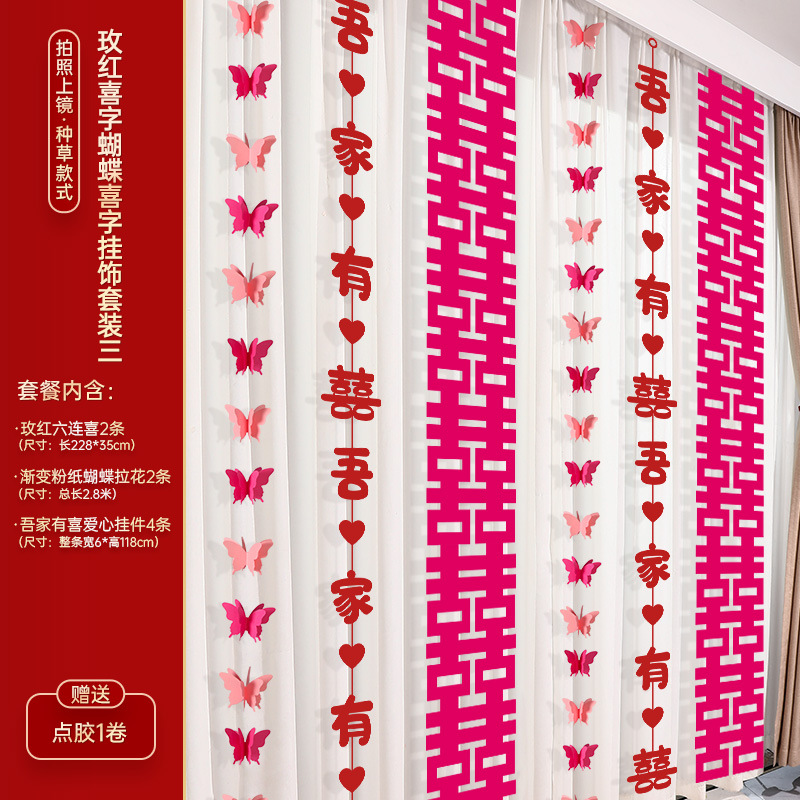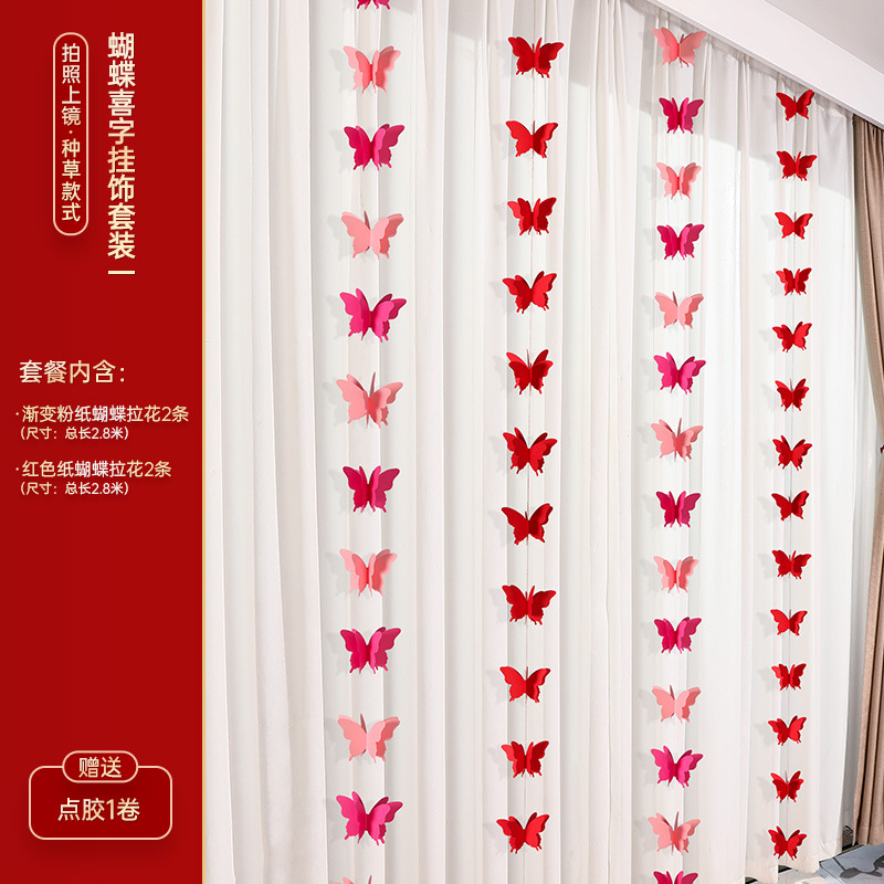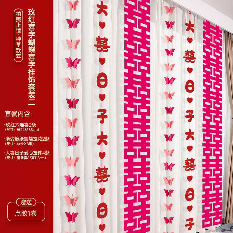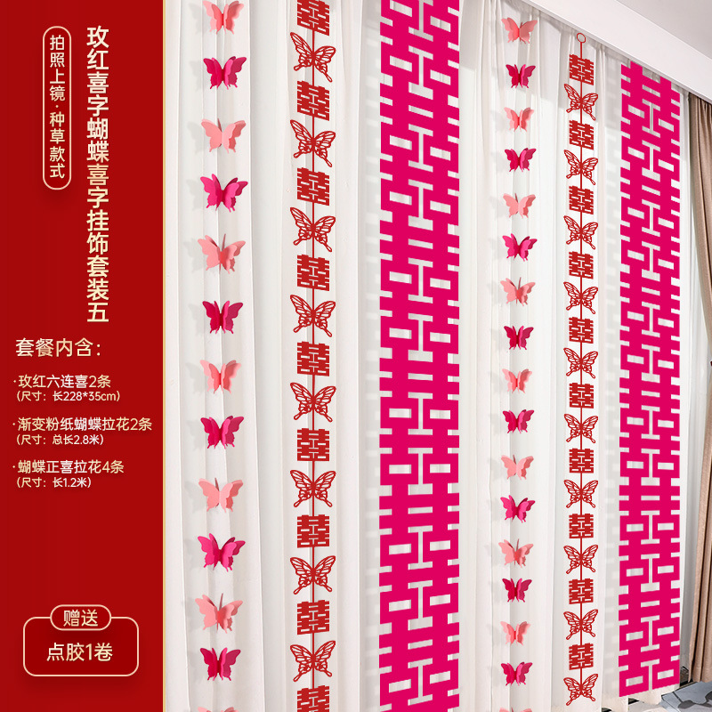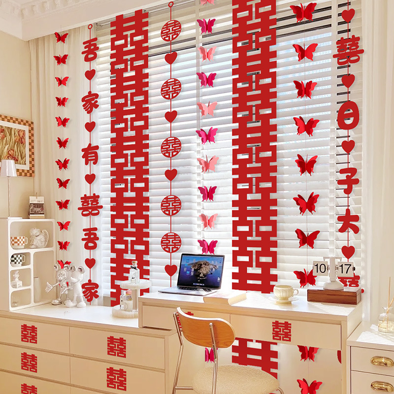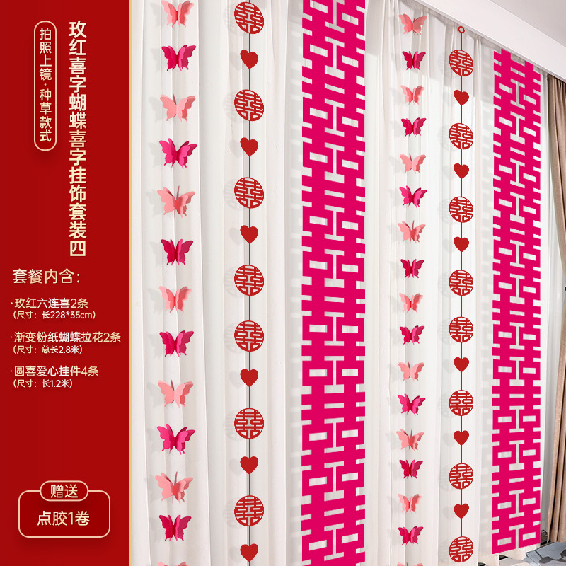 - Specifications: Rose Red Happy Word Butterfly Happy Hanging Ornaments Set of Four
