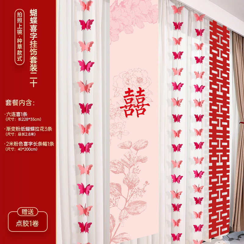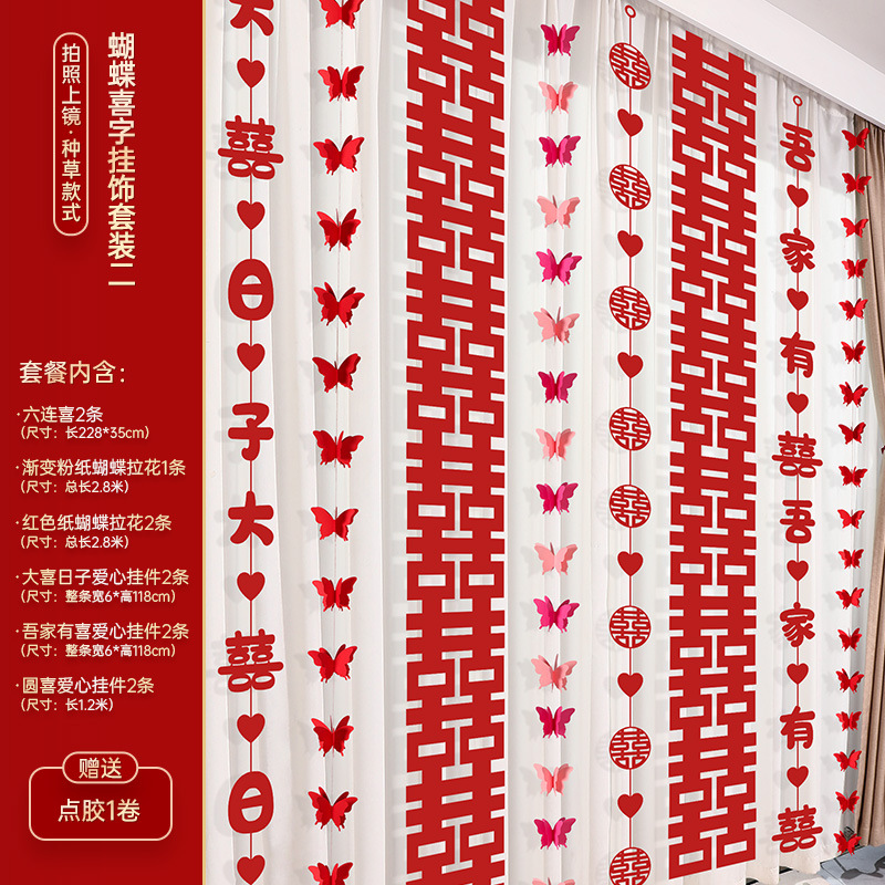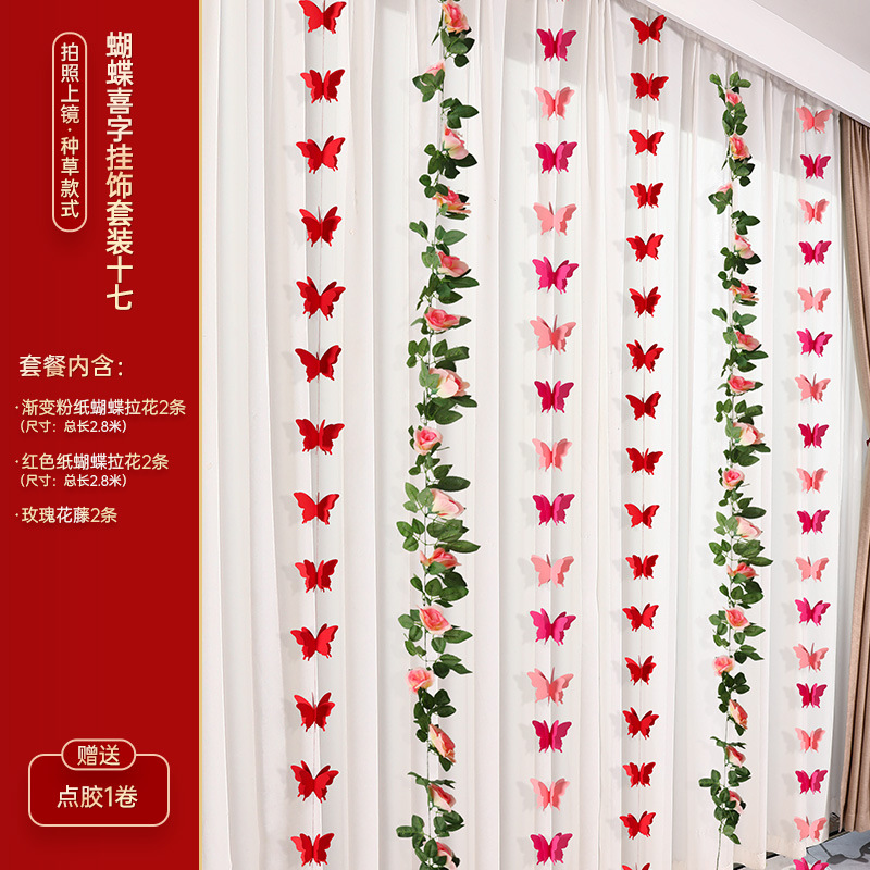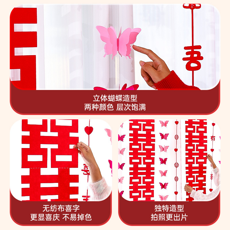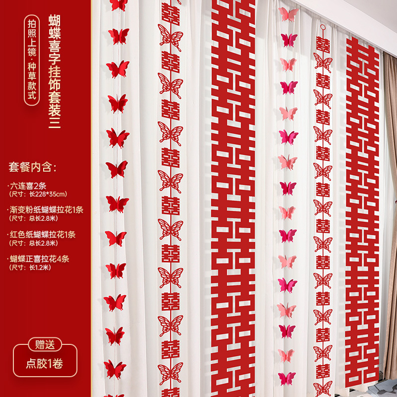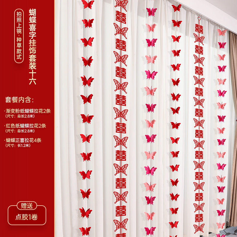 - Specifications: Rose Red Happy Word Butterfly Happy Hanging Ornaments Set of Four