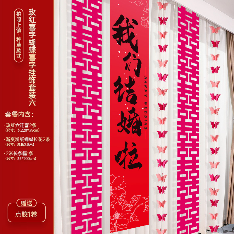 - Specifications: Rose red happy word butterfly happy word pendant set of six