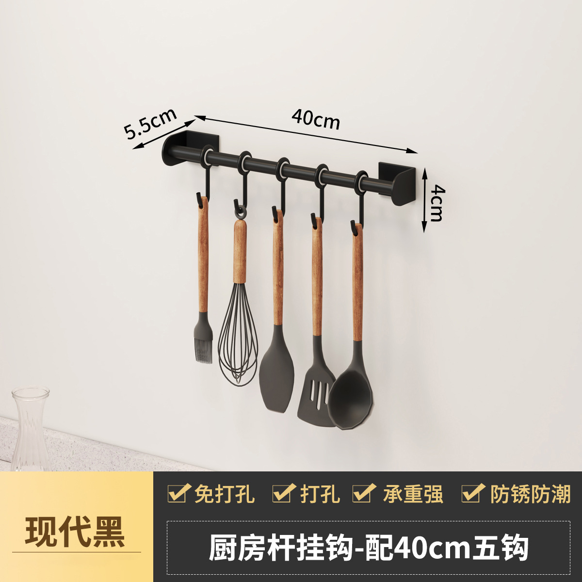 - Specifications: Space aluminum kitchen hanging rod-C style black 40CM