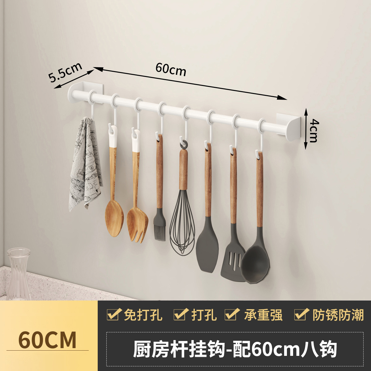 - Specifications: Space aluminum kitchen hanging rod-C style white 60CM