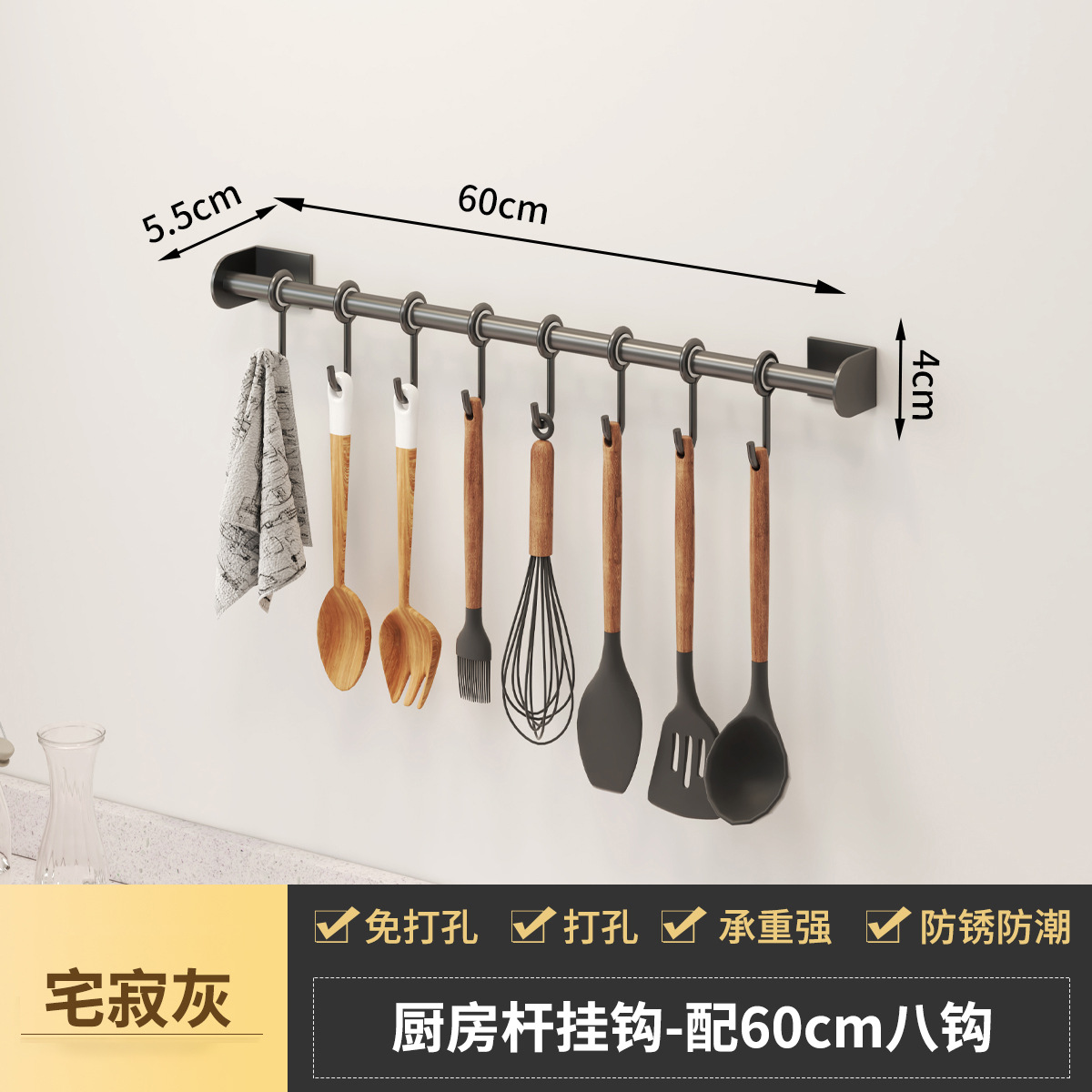 - Specifications: Space aluminum kitchen hanging rod-C model gun gray 60CM