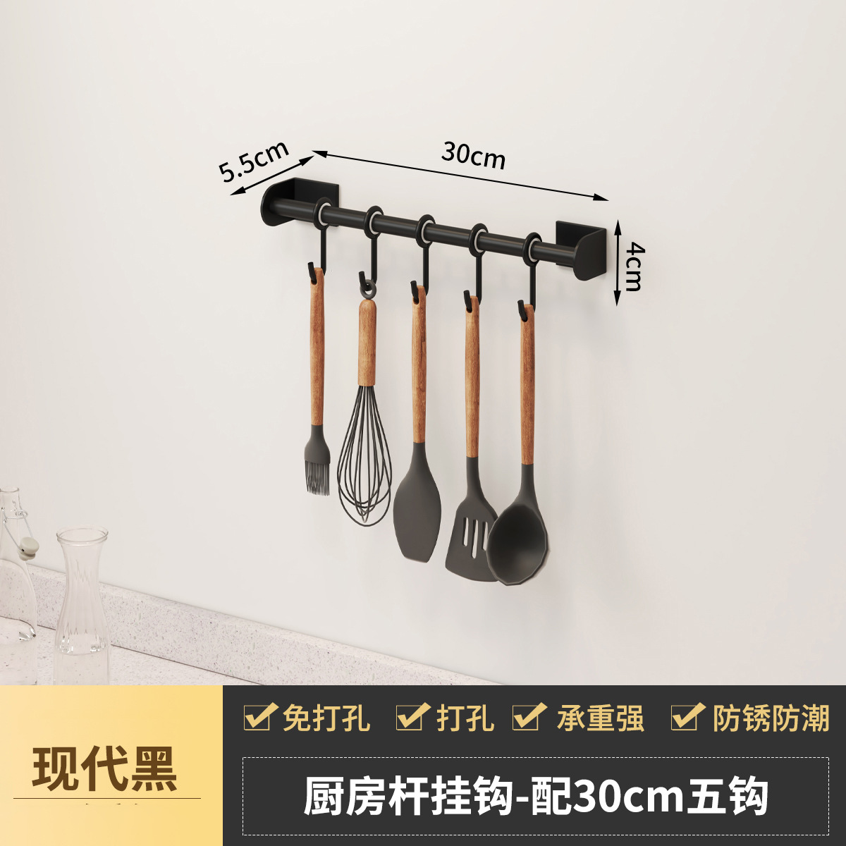- Specifications: Space aluminum kitchen hanging rod-C style black 30CM