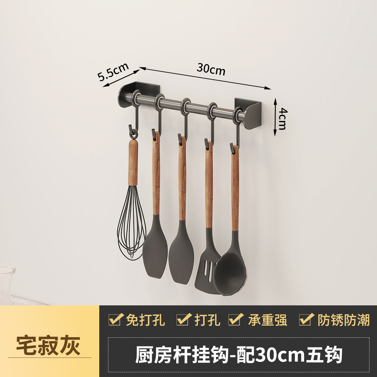 - Specifications: Space aluminum kitchen hanging rod-C model gun gray 30CM