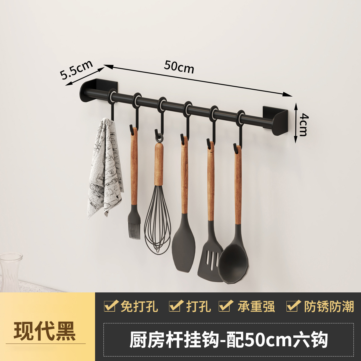 - Specifications: Space aluminum kitchen hanging rod-C style black 50CM