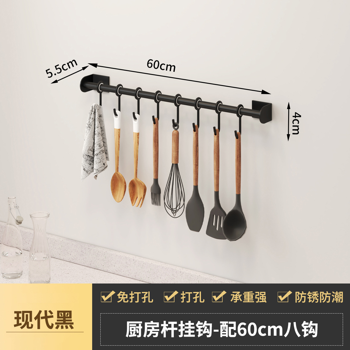 - Specifications: Space aluminum kitchen hanging rod-C style black 60CM