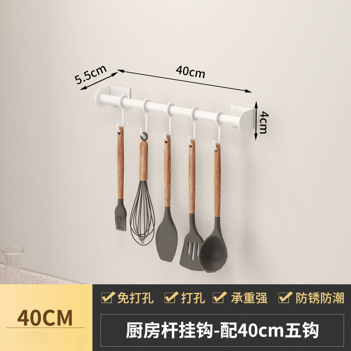 - Specifications: Space aluminum kitchen hanging rod-C style white 40CM