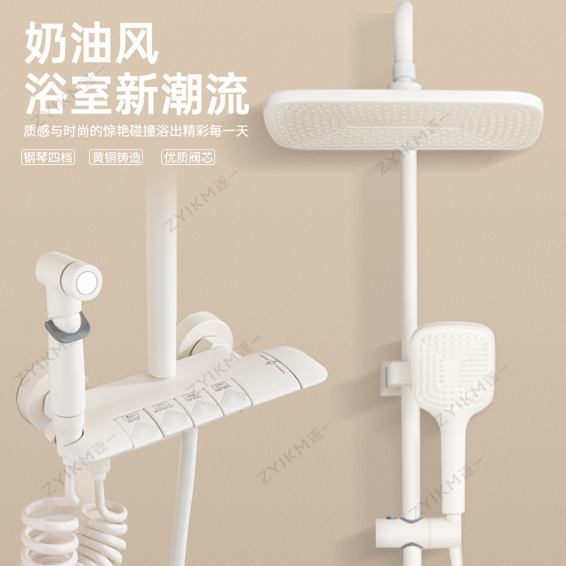- Specifications: Milky white hot and cold four-stop shower head