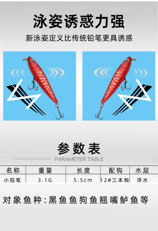 - Bait Type: Pencil
