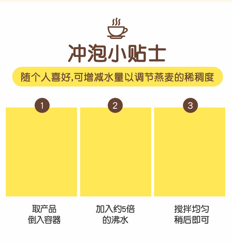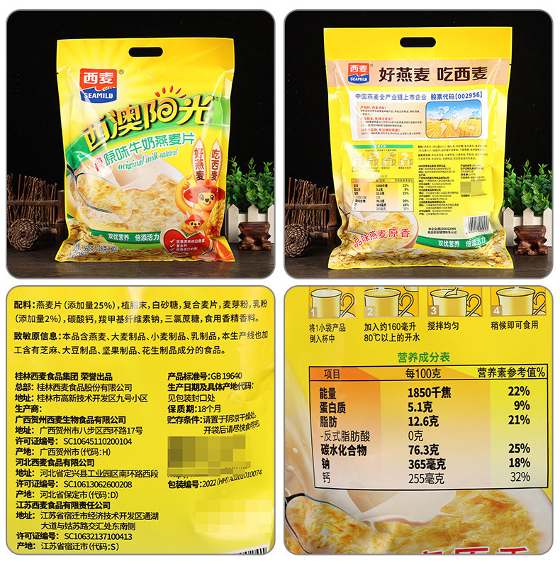 - Raw materials and ingredients: oatmeal (added amount 25%), non-dairy creamer, white sugar, compound oatmeal, malt powder, etc. The actual information on the outer packaging of the product shall prevail.