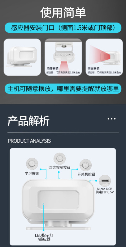 - Product Specifications: White 1 sensing + 1 receiver