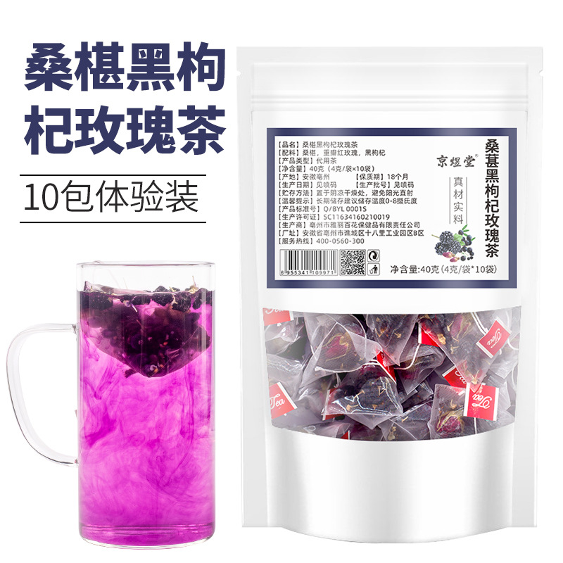 - Packaging specifications: Mulberry, black wolfberry, rose tea, 10 packs*4g