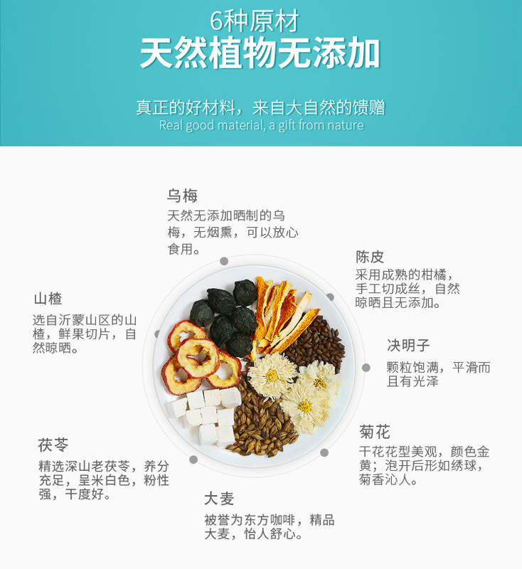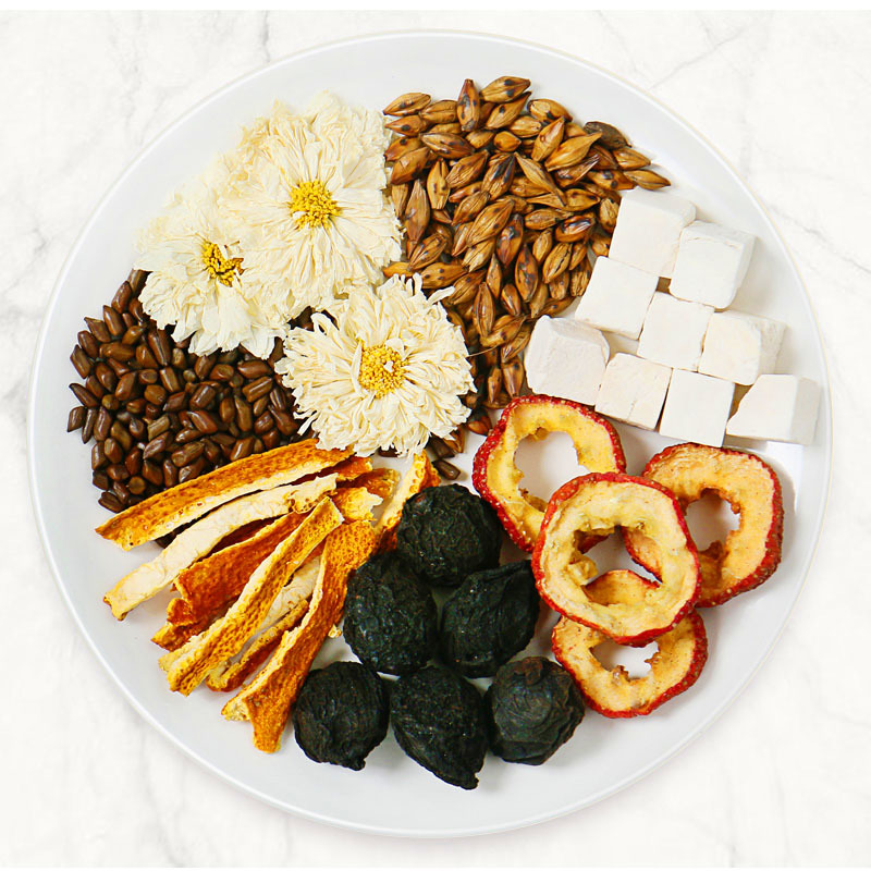 - 原料與配料:烏梅、冰糖、山楂、陳皮、決明子、菊花、大麥、茯苓