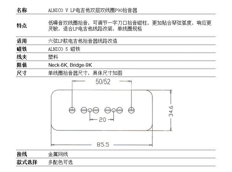 - Material: Alnico5 Magnet