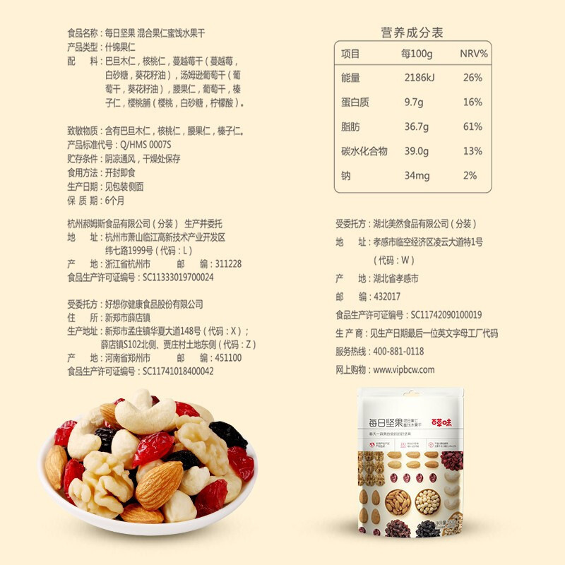- Packaging specifications: 50g of nuts per day