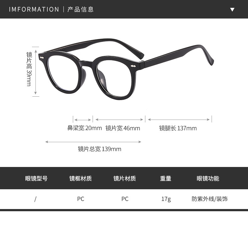 - 眼鏡款式:圓框