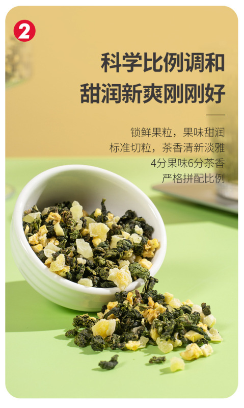 - Raw materials and ingredients: Oolong tea, dried peaches, dried apples