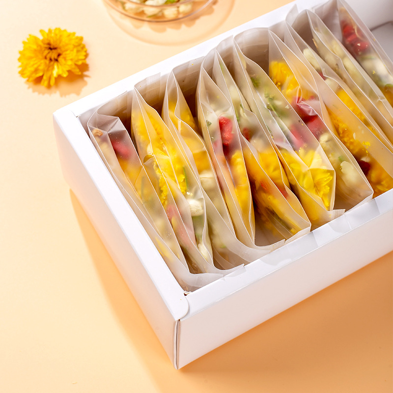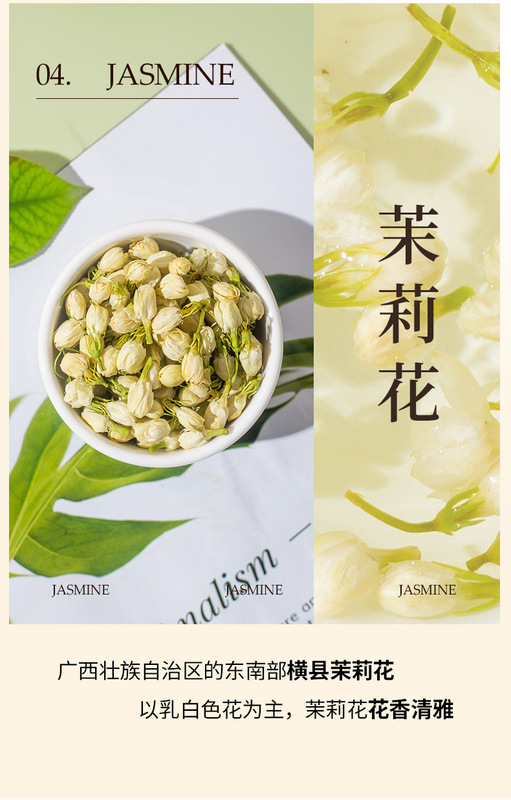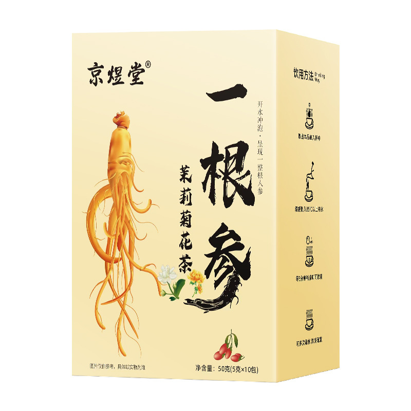 - Packaging Specification: Boxed ginseng, jasmine flower, and chrysanthemum tea (one piece per box)