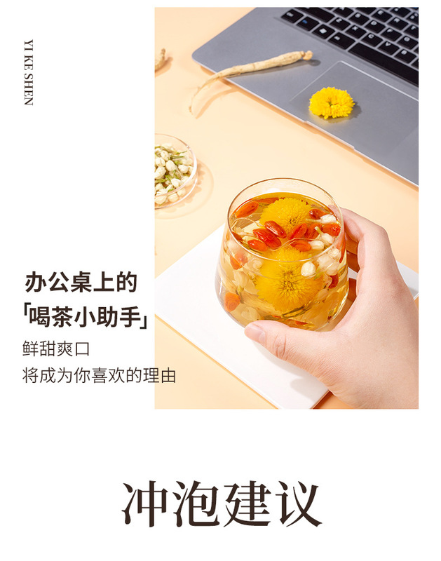 - Ingredients and Materials: Ginseng (artificially planted for 5 years or less), Goji berries, Jasmine flowers, Chrysanthemums