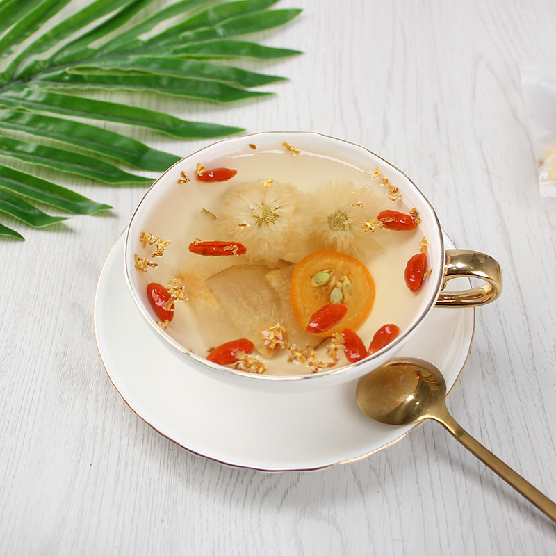 - Ingredients and materials: Chrysanthemum, dried pear, dried kumquat, goji berry, osmanthus, rock sugar