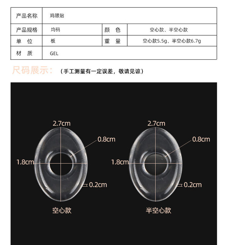 - 型號:雞眼貼