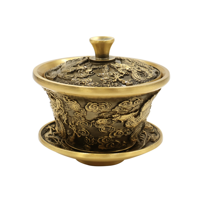 - Specification: Dragon and Phoenix Tea Bowl Set (Copper Color)