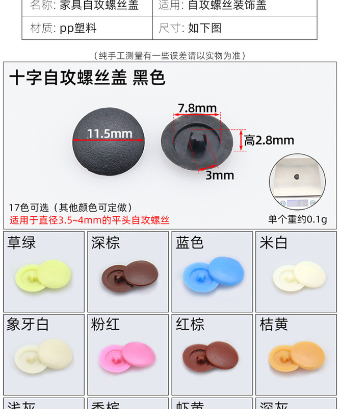 - Scope of Application: Furniture Screw Decorative Cover, Screw Concealing Cover