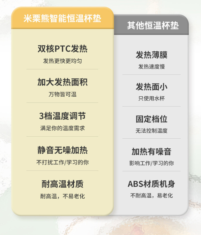 - 規格:清新黃恆溫杯墊+木紋浮雕黃色杯【三檔調溫】