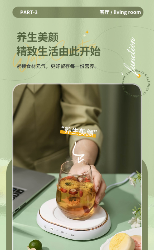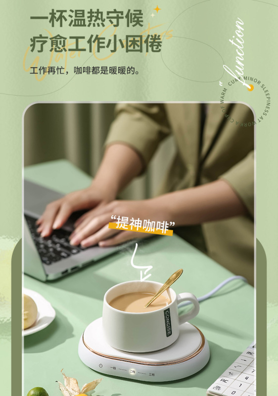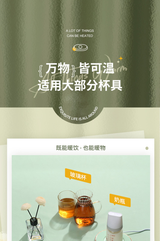 - 規格:抹茶綠恆溫杯墊+木紋浮雕綠色杯【三檔調溫】