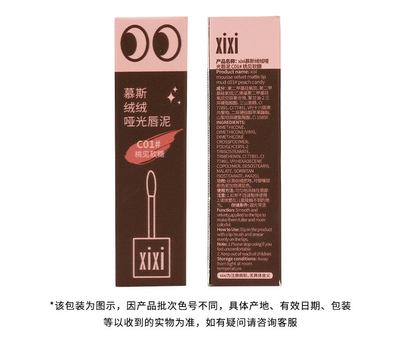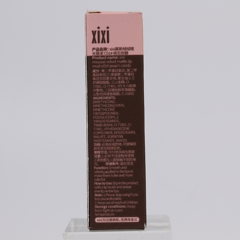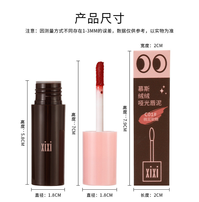 - Product Name: xixi Mousse Velvet Matte Lip Mud C01# Peachy Soft Candy