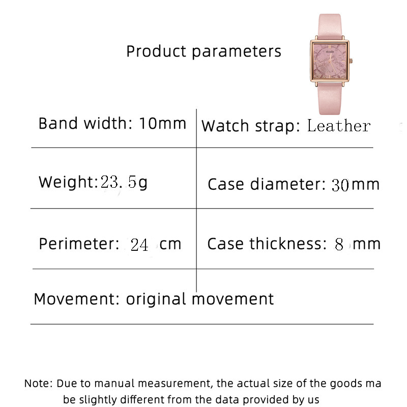 - 錶盤形狀:方形