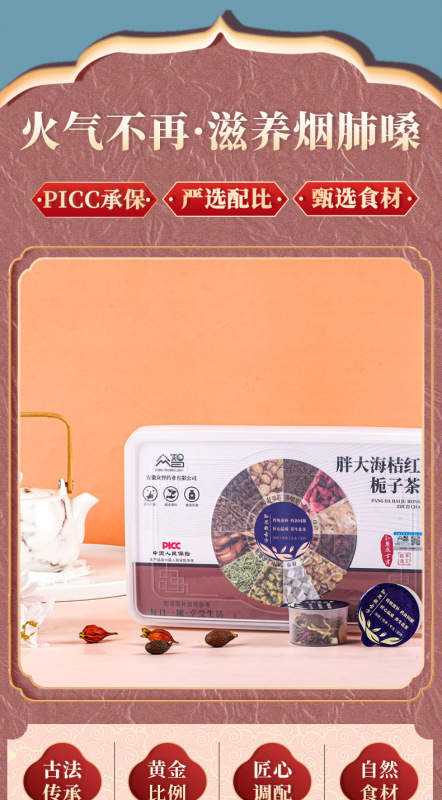 - 包裝規格:胖大海桔紅梔子茶270g/盒