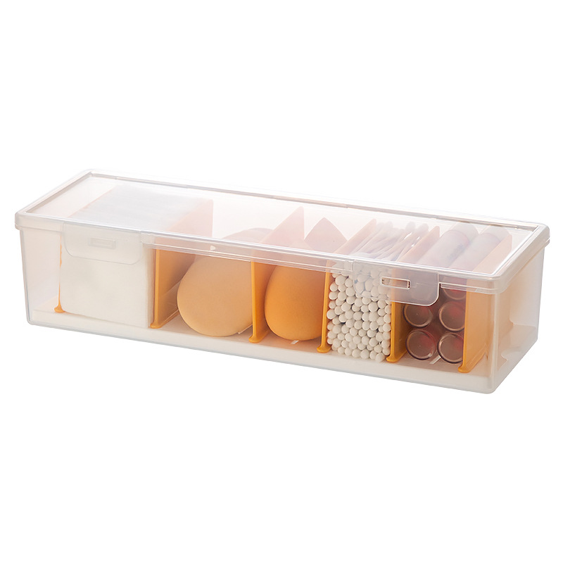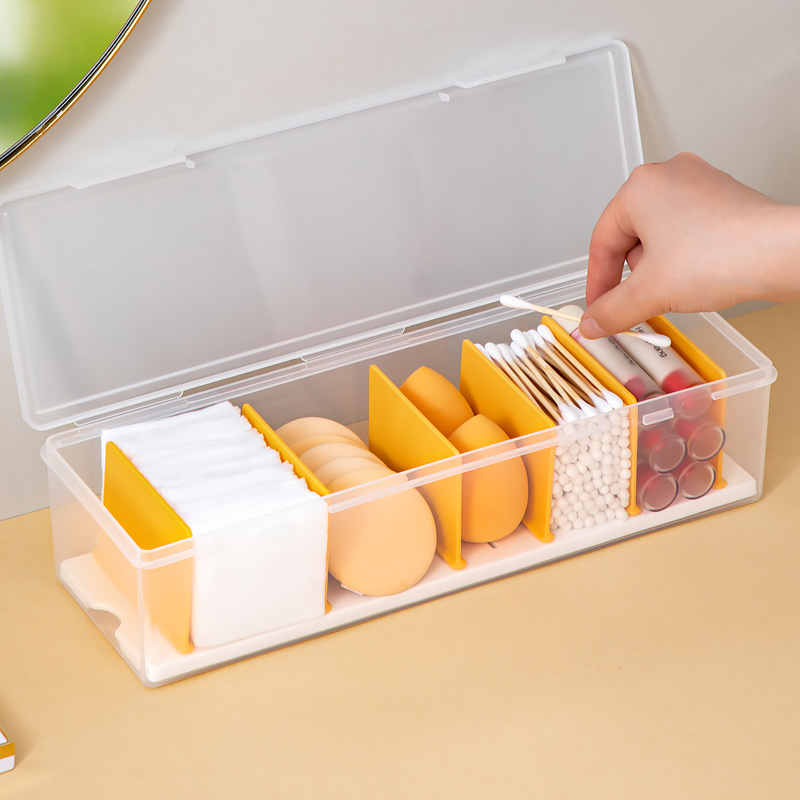- 類型一:桌面翻蓋多格分隔透明收納盒