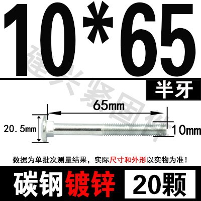 - Specification model: M10*65 (20 pcs) half thread