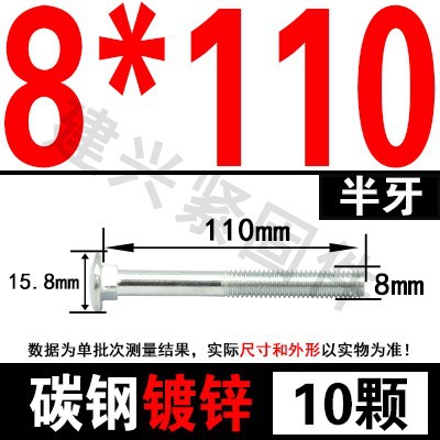 - Specification model: M8*110(10 pcs) half thread