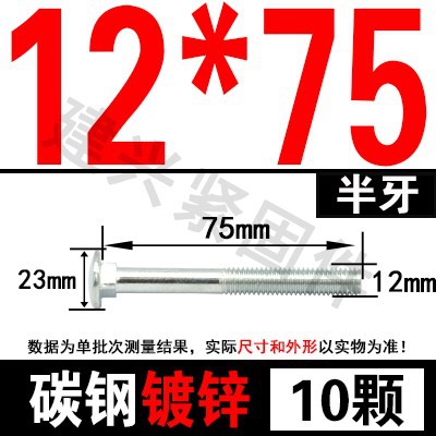 - Specification model: M12*75 (10 pcs) half thread