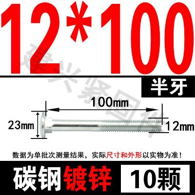 - Specification model: M12*100 (10 pcs) half thread
