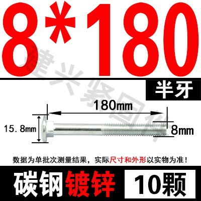 - Specification model: M8*180 (10 pcs) half thread