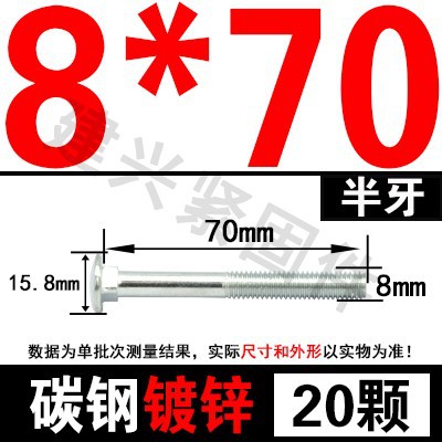 - Specification model: M8*70(20 pcs) half thread